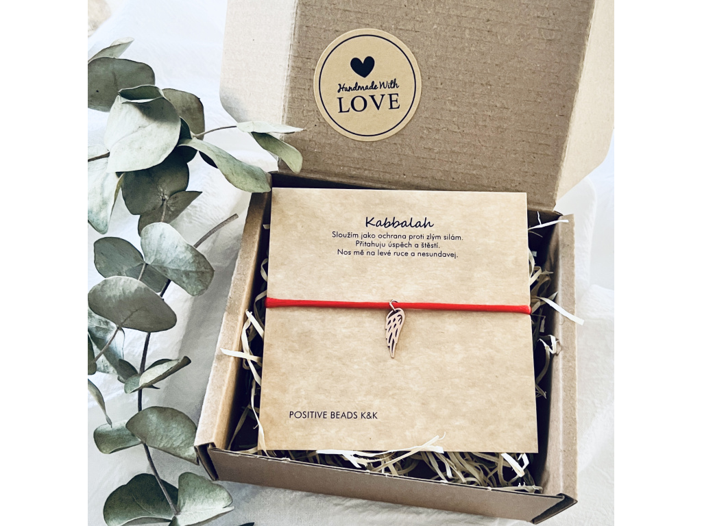 Hledáte výjimečný dárek, který má hlubší význam? Ručně vyráběný Kabbalah náramek s ocelovým andělským křídlem o velikosti 17 x 6 mm