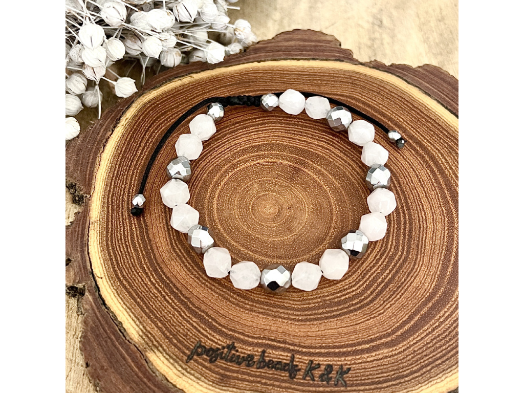 Broušený křemen o velikosti 8 mm a hematit ve stříbrné barvě