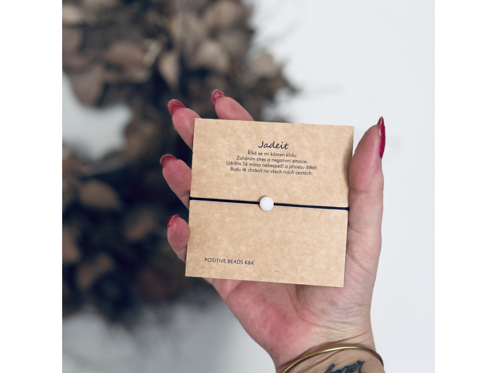 Náramek s Jadeitem ve sněhově bílé barvě o velikosti 8 mm.