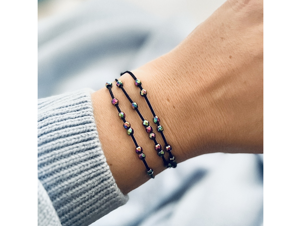 Minimalistický náramek s broušenými korálky duhového hematitu o velikosti 4 mm.