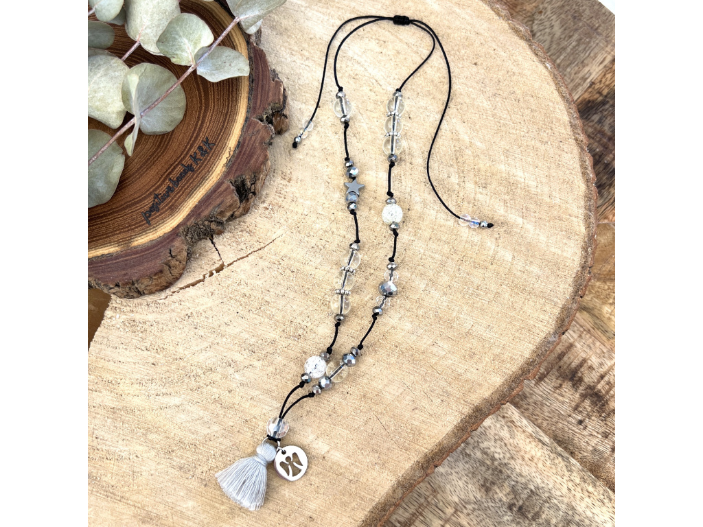 Délka je nastavitelná díky pletenému macrame vázání