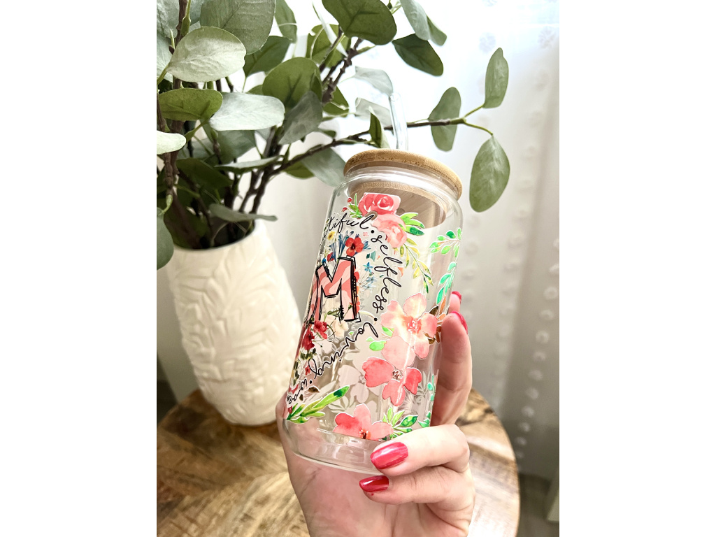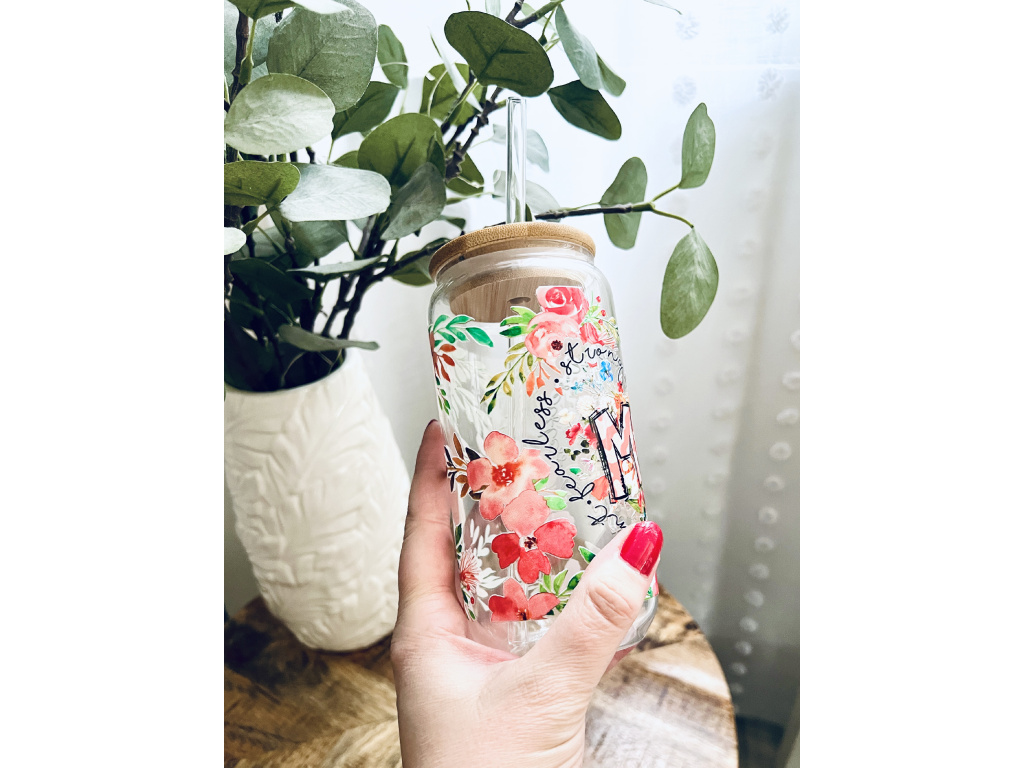 🌸 Sklenička s bambusovým víčkem a skleněným brčkem - MOM